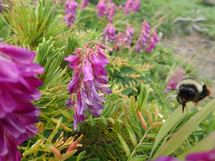 現地では何だか分からず、バシャバシャと写真を撮っていたら、ハナバチが偶然写り込みました。